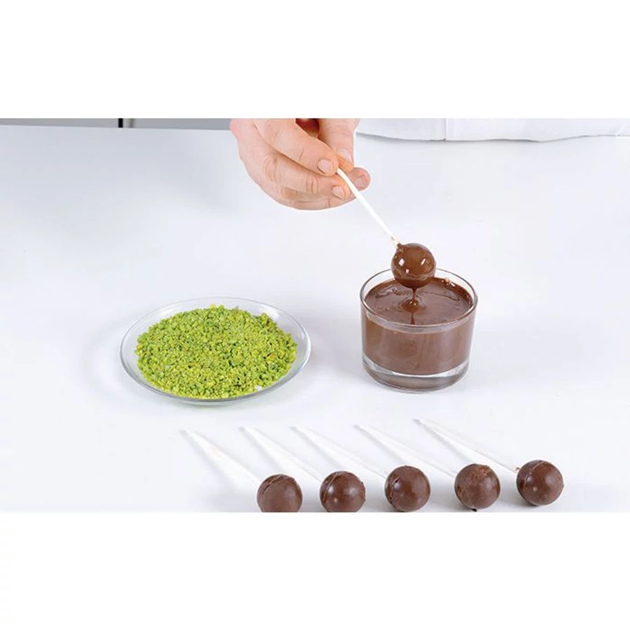 A SilikoMart átlátszó szilikon forma ideális választás nyalókák és pálcikás édességek készítéséhez, amikor a pontos kivitelezés és az esztétikus végeredmény kiemelten fontos. Az átlátszó kialakítás lehetővé teszi a töltési folyamat és a dekoráció folyamatos ellenőrzését, így a formák egyenletesek és precízek lesznek.