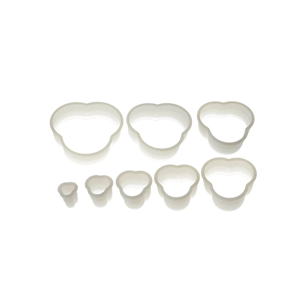 Részletes és szép formák, ideálisak bármilyen torta díszítéséhez. Könnyen és gyorsan használható. Használati utasítások: A cukormasszát nehezen tapadó felületen nyújtsa ki, kevés növényi olajjal megkenve. A kiszúrókat is kenje be növényi olajjal, majd helyezze a kinyújtott cukormasszára. Enyhén nyomja meg a kiszúrók szélét. Ismételje meg az előző lépést a következő forma létrehozásához. Használat után távolítsa el a cukormasszát a kiszúró széléről. A kivágott formákat hagyja száradni, és készítsen egyedi formákat fondantból, marcipánból vagy bármilyen cukormasszából.