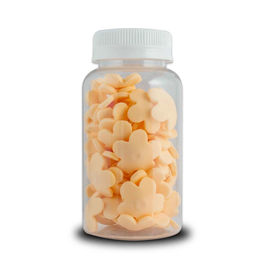 | Összetevők | cukor (min.71%), keményítő (kukorica), módosított keményítő (E1422), víz, glükóz szirup, sűrítőanyag: xantángumi, tartosítószer: kálium-szorbát (E202), aroma: vanília aroma, étkezési sav: citromsav (E330), növényi olaj (pálma), zselésítőanyag: zselatin, színezékek: karmazsin (E122), alluravörös AC (E129), sunset yellow FCF (E110) |