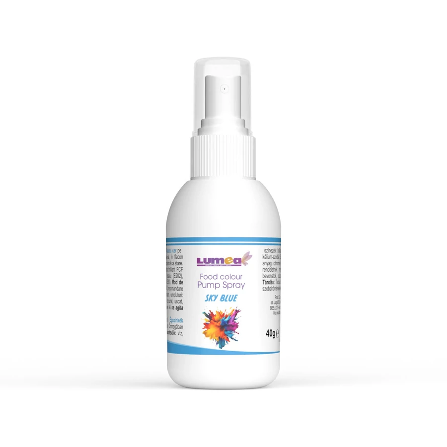 Lumea égszínkék vízbázisú szórófejes ételfesték világos, friss és légies kék árnyalatot biztosít, amely finom és elegáns megjelenést ad cukrászati dekorációidnak. A praktikus szórófejes kialakítás gyors és egyenletes felvitelt tesz lehetővé különböző felületeken.