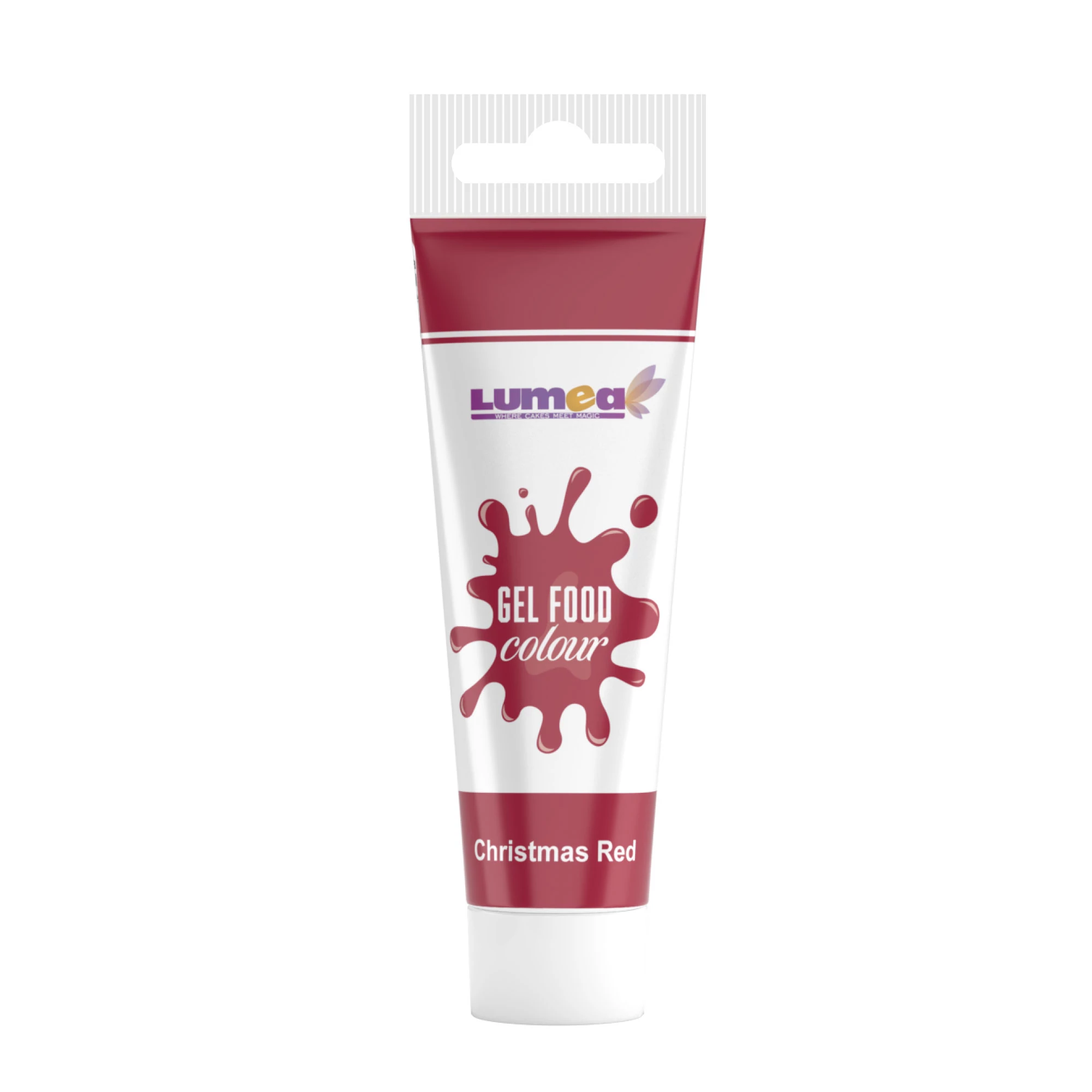 Lumea karácsonypiros tubusos ételfestékgél mély, ünnepi hangulatú piros árnyalatot biztosít, amely tökéletes választás karácsonyi és téli tematikájú cukrászati dekorációk készítéséhez. Ideális ünnepi tortákhoz, mézeskalács díszítésekhez, virágmintákhoz és karakteres színkiemelésekhez.