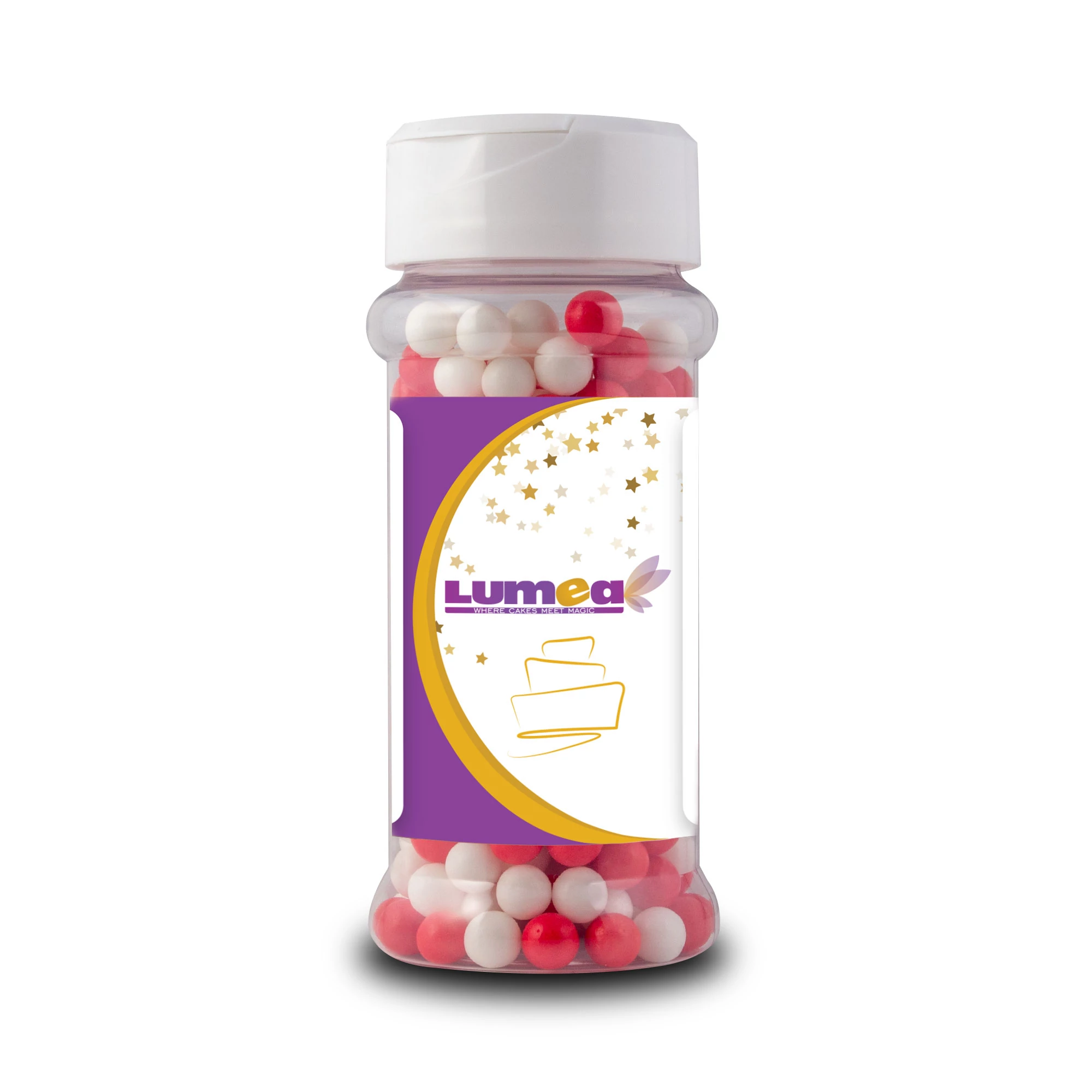 Lumea piros és fehér cukorgyöngy, 7mm, 80g – Klasszikus cukorgyöngy dekor, amely megbízhatóan hozza a kívánt hatást tortán és desszerten is. Színe: fehér piros. Méret: 7 mm.