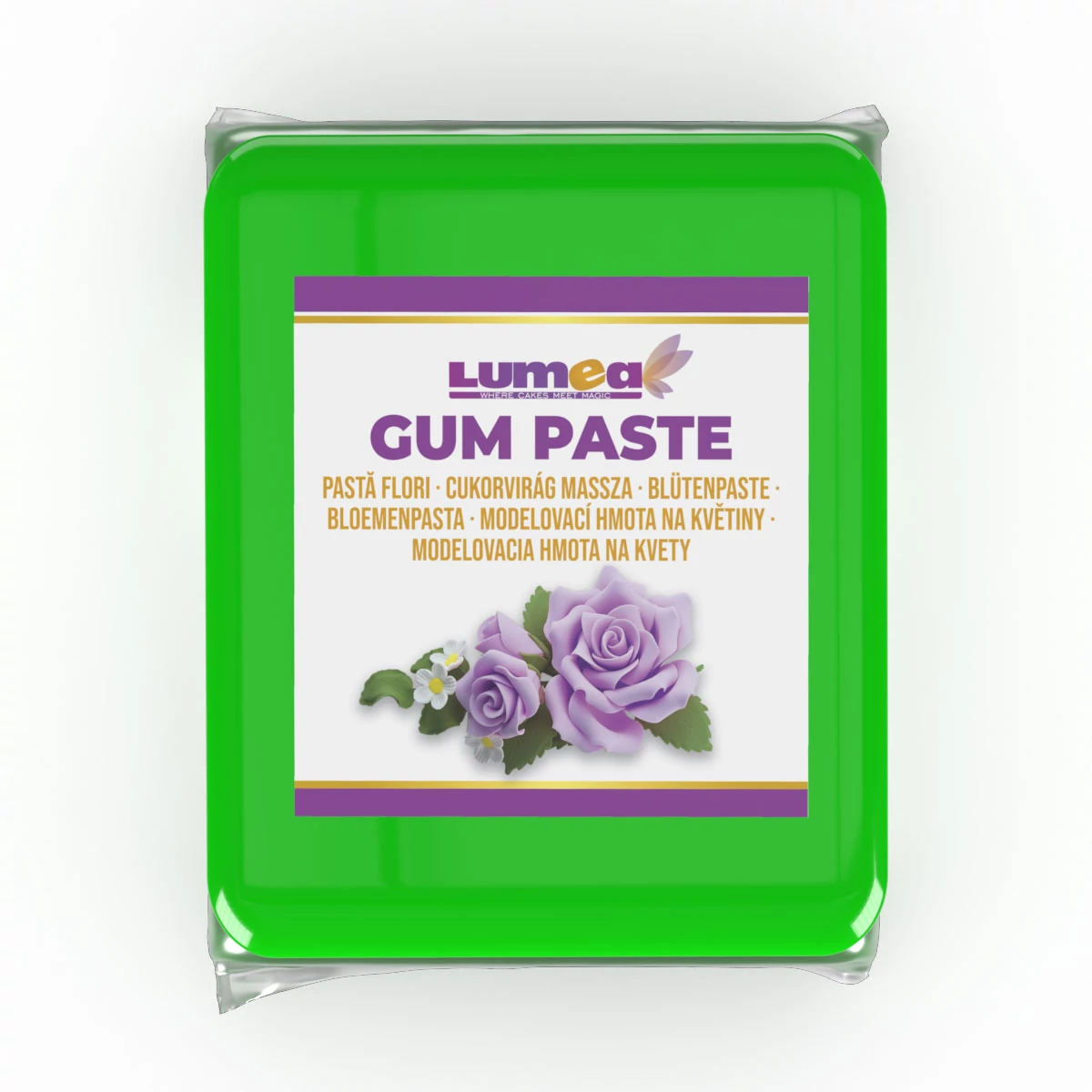 A Lumea cukrászati massza megbízható minőségű alapanyag, amely egyenletes állagának köszönhetően könnyen nyújtható és jól kezelhető. Kifejezetten cukorvirágok, szirmok és levelek precíz kialakításához ajánlott. A zöld árnyalat jól illeszkedik különböző tortadíszítési stílusokhoz.