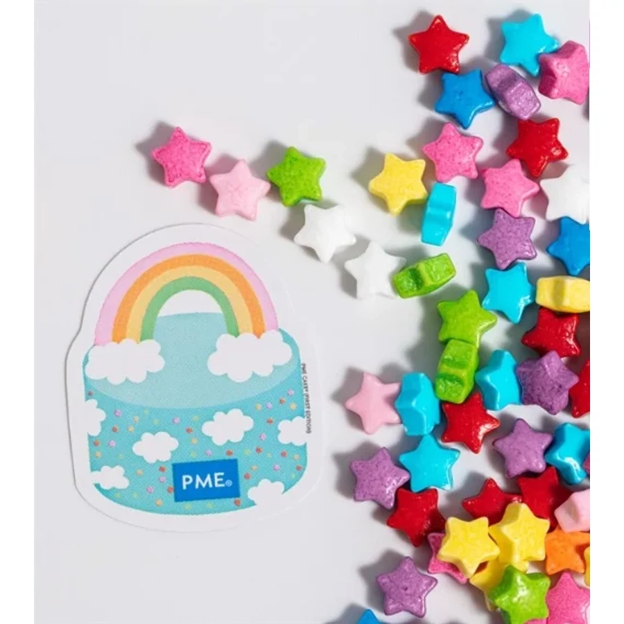 Apró, színes csillagok, amelyek azonnal ünnepi hangulatot varázsolnak a desszertjeidre. A PME Mini Rainbow Star Sprinkle Mix vidám, élénk színű cukorcsillagokat tartalmaz, amelyek tökéletesek torták, cupcake-ek, cake popok és kekszek díszítéséhez.
